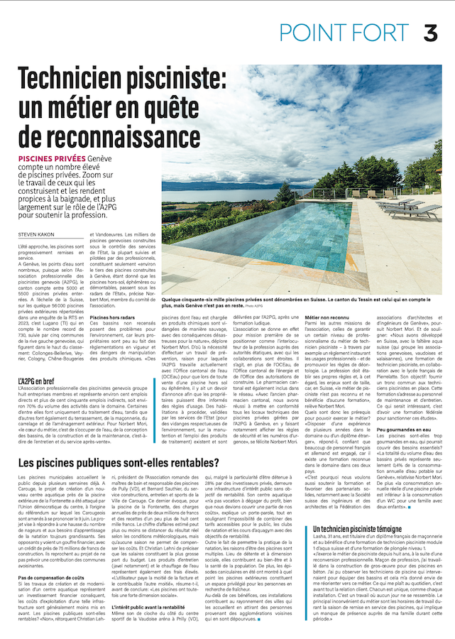 Girod Piscines est fière d’être membre fondateur et à la présidence de l’association des piscinistes professionnels genevois (A2PG).
